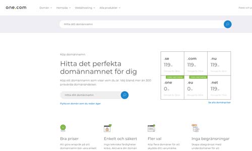 Är du ute efter att enkelt hitta lediga domännamn, och vill köpa dem billigt å är det till dem du ska vända dig. Dem har ofta kampanjer på .se, .nu och .com domäner på One!